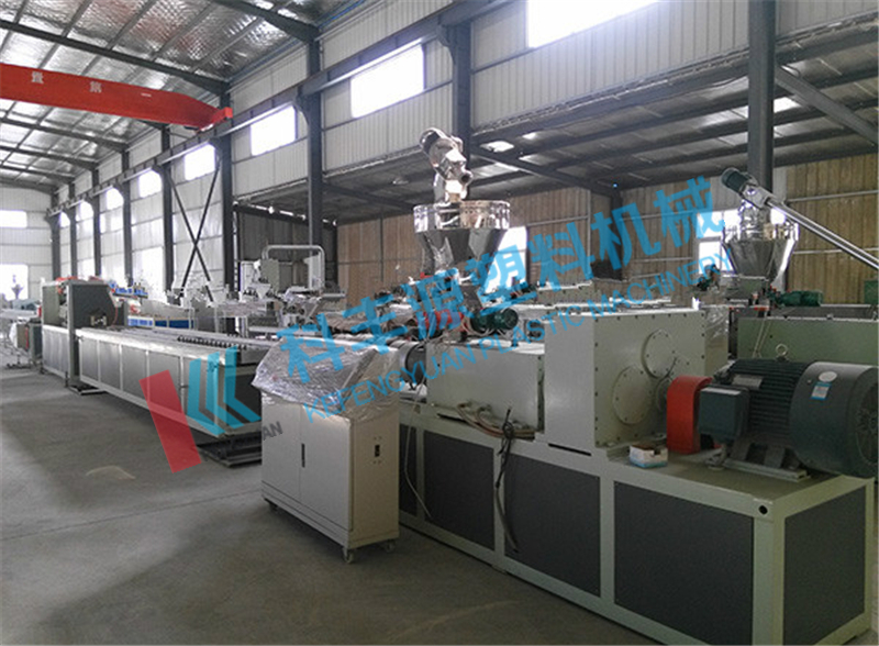 PVC異型材設(shè)備是生產(chǎn)PVC塑料異型材的專業(yè)生產(chǎn)設(shè)備,主要生產(chǎn)門(mén)窗系列異型材、板材、片材、微發(fā)泡異型材、微發(fā)泡裝飾板材。我公司引進(jìn)吸收國(guó)外技術(shù)而研制的大型塑料門(mén)窗異型材生產(chǎn)線,配套以錐形雙螺桿擠出機(jī),具有自動(dòng)化程度高,工作性能平穩(wěn),產(chǎn)量大,效率高等優(yōu)點(diǎn)。
