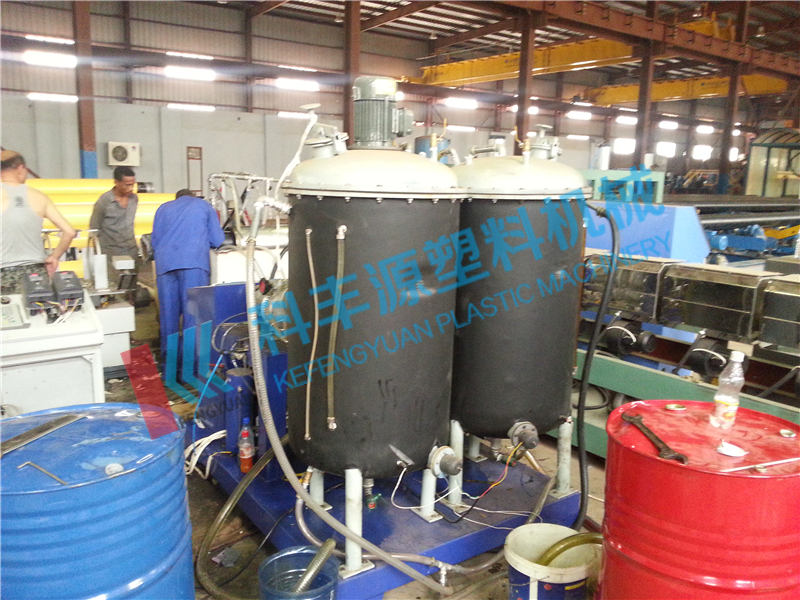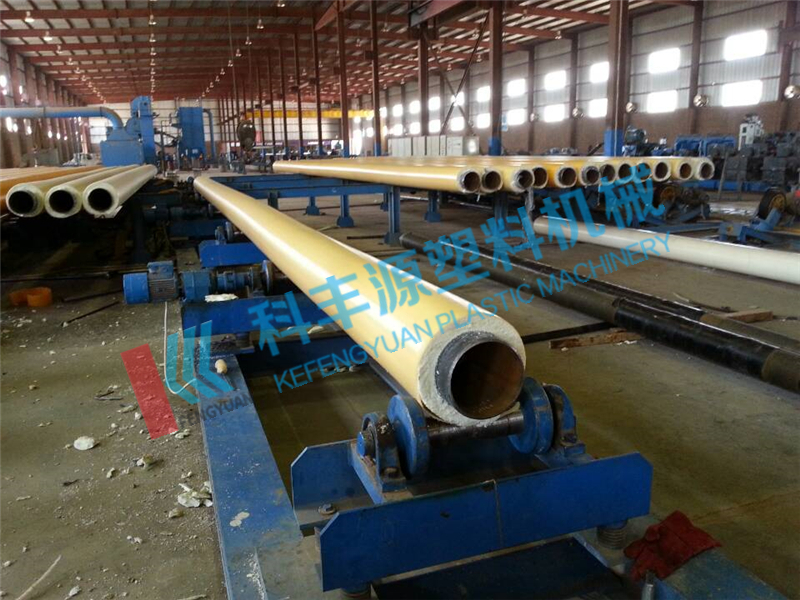 青島科豐源塑料機(jī)械有限公司生產(chǎn)的一步法保溫管設(shè)備已經(jīng)有10多年的歷史了,在生產(chǎn)實(shí)踐中積累了豐富的技術(shù)經(jīng)驗(yàn),并且不斷進(jìn)行技術(shù)改進(jìn),提高產(chǎn)品的適用性。一步法是將絕熱層、防腐層在同一時(shí)間包裹在鋼制管道的外層表面,一次成型為管道的保溫防腐層,是國內(nèi)獨(dú)創(chuàng)的生產(chǎn)技術(shù)。相比同類生產(chǎn)技術(shù),該技術(shù)可以實(shí)現(xiàn)連續(xù)作業(yè),提高生產(chǎn)效率、降低成本、節(jié)約資源、污染排放小等特點(diǎn)。
