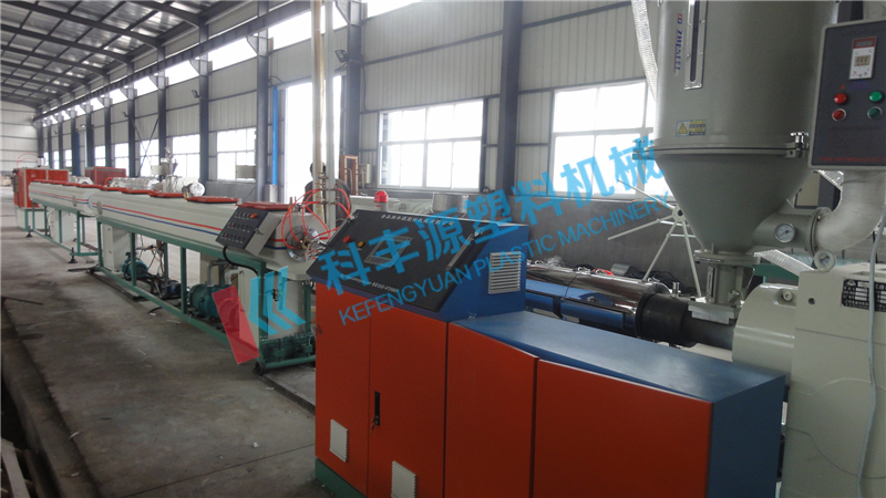 PP-R管具有價廉、無毒、無銹蝕、耐高溫、安裝方便等特點,該機組主要由單螺桿擠出機、真空定型臺、噴淋箱、牽引機、切割機、翻料架組成。該設備同時可以生產PE自來水管,PE-RT太陽能熱水管道 生產線選用高效螺桿擠出機,具有高速擠出、高效塑化的特點。屏障型兩極混練PP-R專用螺桿。配置二次分流型新型模具,具有低溫、低壓擠出的特點;水膜式定徑套,保證管材高速生產。