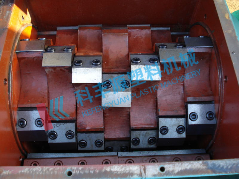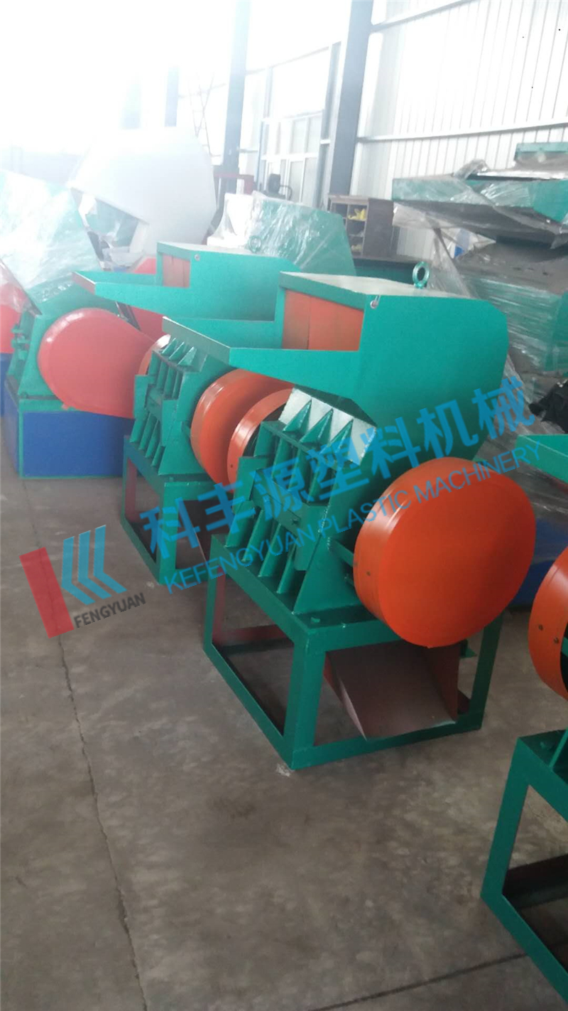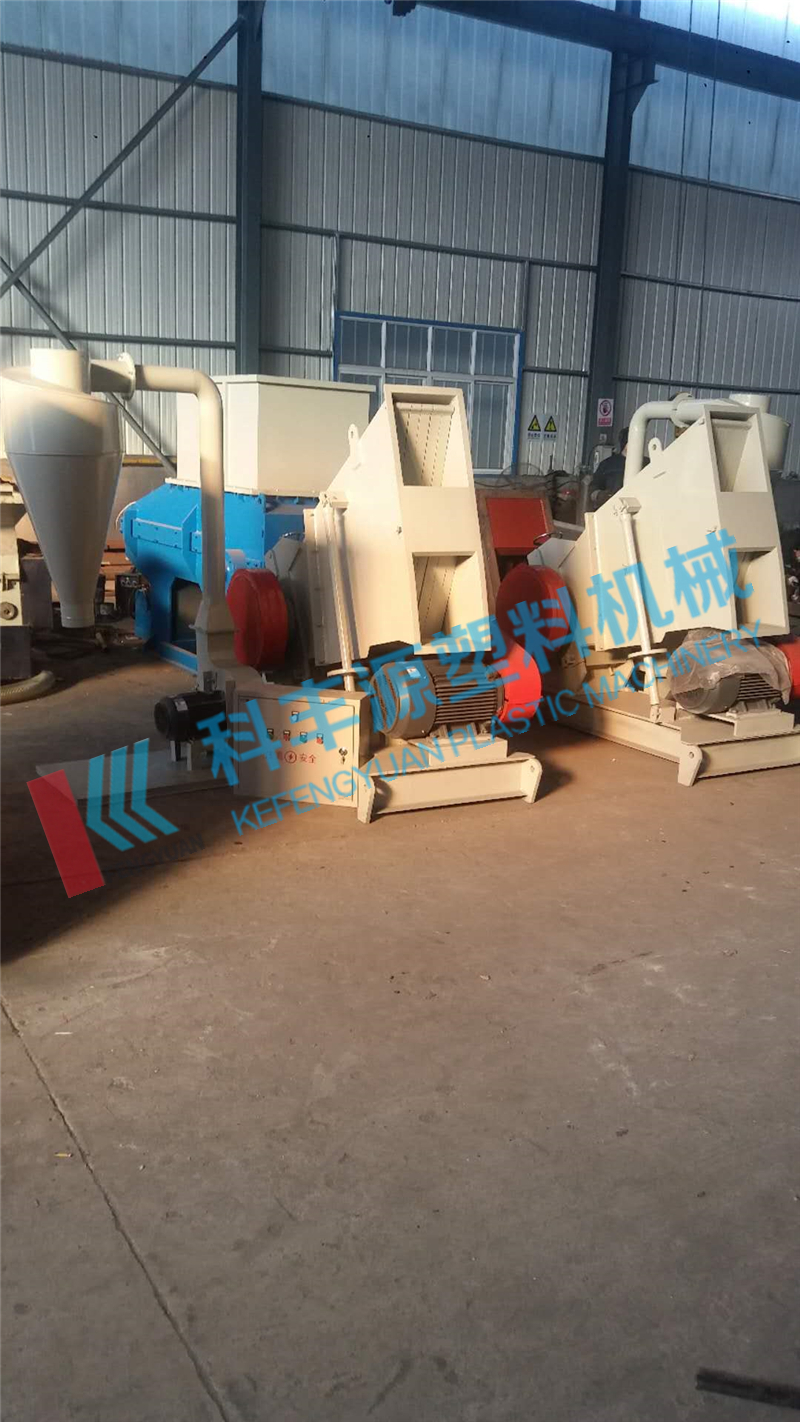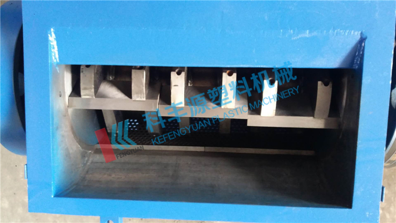 塑料破碎機(jī)通過(guò)電動(dòng)機(jī)帶動(dòng)動(dòng)刀刀架做高速旋轉(zhuǎn),在動(dòng)刀高速轉(zhuǎn)動(dòng)的過(guò)程中與定刀形成相對(duì)運(yùn)動(dòng)的剪切趨勢(shì),利用動(dòng)刀與定刀之間形成的剪切從而對(duì)大塊塑料進(jìn)行破碎、粉碎,破碎后形成10-20mm大小的塑料片,通過(guò)篩網(wǎng)對(duì)塑料顆粒大小進(jìn)行過(guò)濾輸出。
