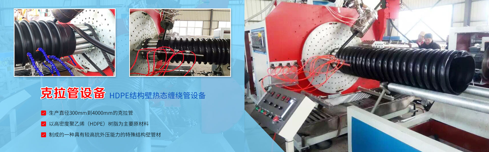 克拉管生產(chǎn)線(xiàn),內(nèi)肋管生產(chǎn)線(xiàn),中空壁纏繞管設(shè)備為創(chuàng)造名牌,提高企業(yè)知名度,樹(shù)立企業(yè)形象,我們本著“一切追求高質(zhì)量,用戶(hù)滿(mǎn)意為宗旨”的精神,